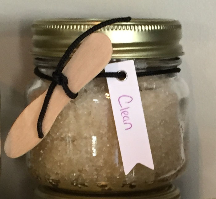 pure can sugar, extra virgin olive oil, and a combination of spearmint, eucalyptus, lavender and chamomile essential oils